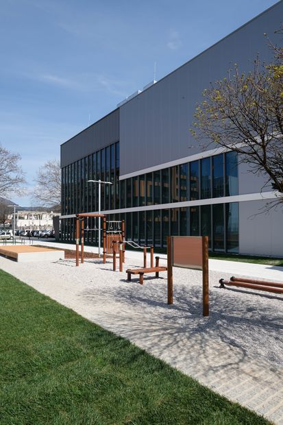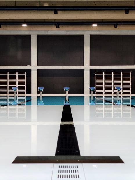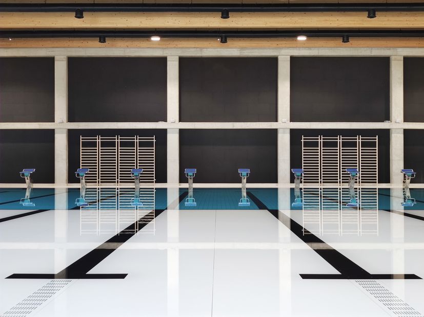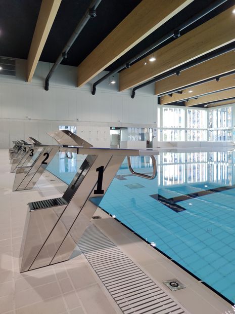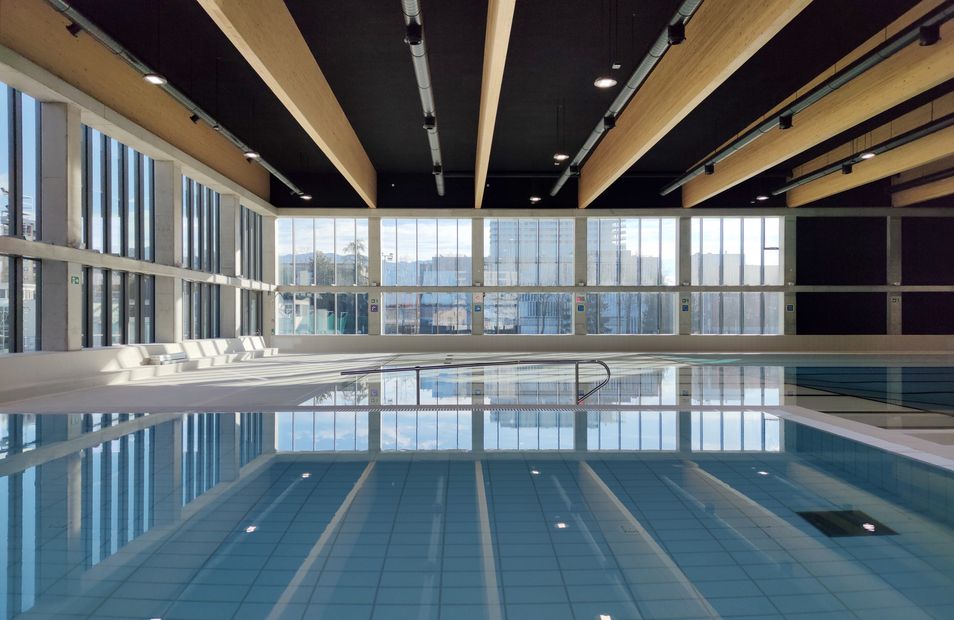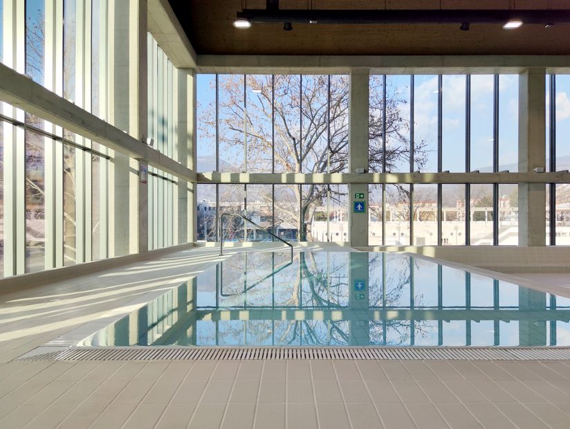 V sklopu projekta je bila izdelana dokumentacija IDZ, DGD, PZI in PID. Paviljonska zgradba zimskega bazena, ki se nahaja v neposredni bližini obstoječega zunanjega olimpijskega bazena, zapolnjuje vrzel v strukturi športnega parka. Na gradbenem zemljišču kvadrataste oblike in površine dveh teniških igrišč je bazen zasnovan kot masiven kubusni volumen, ki kar najbolje izkorišča skromnost razpoložljivega prostora. Bazenska ploščad je dvignjena na nivo prvega nadstropja, kjer se razprostira po celotni površini, velike fasadne zasteklitve pa zagotavljajo dobro naravno osvetlitev globoko v notranjosti prostora in kopališče povezujejo s pogledom na zunanji bazen in igrišče ter okoliške hribe, ki objemajo mesto s severa. V pritličju so pod ploščadjo bazena okoli kompenzacijskih bazenov razporejeni vsi tehnični in servisni prostori ter vhodna avla z garderobnimi in sanitarnimi prostori za obiskovalce.